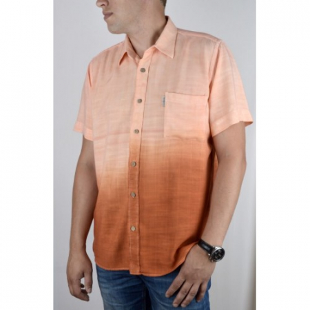 Модель прямого силуэта с накладным нагрудным карманом. Цвет оранжевый (растяжка от темного к светлому). Короткий рукав.Товар соответствует техническому регламенту о безопасности продукции легкой промышленности.