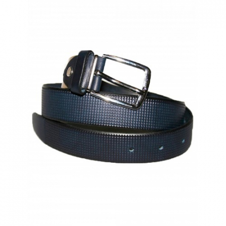 Синий классический ремень из натуральной кожи с хромированной пряжкой для детей младших классов.