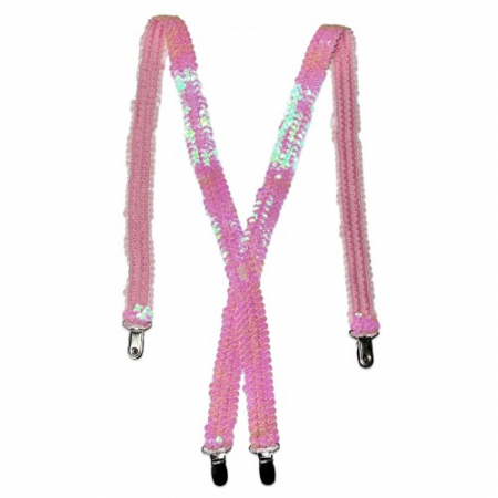 Детские подтяжки для девочки с пайетками "Belona". Фиксируются с помощью трех металлических зажимов, регулируются по всей длине и имеют форму Y.