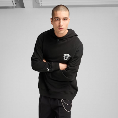 Embrace the legacy with this PUMA hoodie. Featuring a Turbo Club graphic on the back, relaxed fit, kangaroo pocket, and a unique PUMA cat cord stopper. Perfect for those who love to stand out and make a statement.