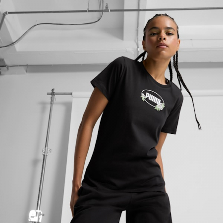 Elevate your wardrobe in style with this cozy cotton tee, showcasing a fun floral pattern you'll love to show off. PUMA branding gives any look an edge, while this tee's comfort fit makes it the perfect choice for a relaxing and laid-back day.