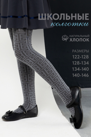 Классические колготки для девочек. На всей поверхности рисунок в виде греческого орнамента меандр. Отлично подойдут для школы.