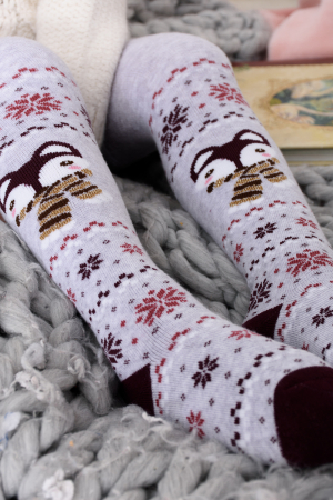 Плюшевые детские колготки с люрексом. На изделии вывязаны скандинавские узоры и лиса