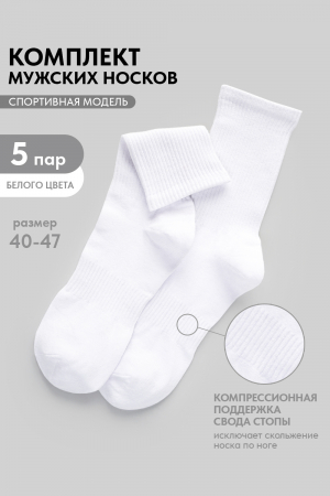 Комплект мужских носков 5 пар. Высокая резинка обеспечивает плотное прилегание к ноге, компрессионная поддержка свода стопы.