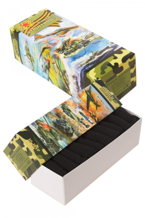 Подарочный набор мужских носков. В комплекте 10 пар, картонная упаковка. Однотонная черная расцветка, высота паголенка чуть ниже классического
