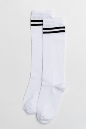 Стильные молодежные гольфы в лаконичных расцветках с контрастными полосами. В упаковке 1 пара.