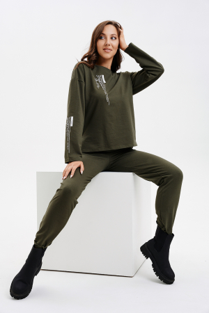 Стильный женский брючный костюм с оригинальным принтом выполнен в стиле спорт шик и умеренного oversize. Костюм состоит из укороченного спереди лонгслива с длинным рукавом, округлым вырезом горловины, разрезами по бокам и прямых брюк с удобной широкой резинкой на поясе с двумя боковыми карманами. Наш брючный костюм выполнен из мягкой трикотажной ткани. Благодаря свободному верху и удобной посадке брюк Вам будет комфортно носить костюм каждый день. Женский костюм двойка подходит для повседневной носки, работы в офисе или посещение школы, а также для торжественных мероприятий.