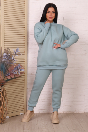 Костюм из футера 3-х нитки с начесом. Толстовка без капюшона, с карманами, рукав спущенный. Брюки прямые без карманов, пояс и манжеты из кашкорсе