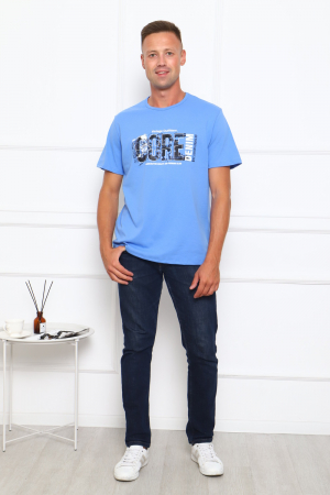 Футболка мужская, выполнена из трикотажного полотна кулирка. Футболка свободного кроя, горловина окантована, на полочке выполнена печать.