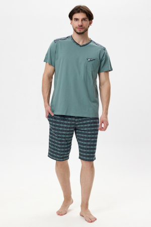 Домашний мужской комплект от бренда Lika Dress - идеальный вариант для отдыха, для сна и других домашних активностей. Комплект состоит из удобных и стильных клетчатых шорт, а также однотонной футболки с карманом на груди и V-образным вырезом с окантовкой в цвет шорт. Наш костюм сшит из нежного и качественного трикотажа - кулирки. Поэтому ткань дышит, не электризуется, не вызывает раздражения и прекрасно впитывает влагу.