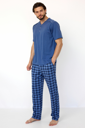 Классический домашний комплект мужской от бренда Lika Dress - идеальный вариант для отдыха, для сна и других домашних активностей. На футболке есть кнопки, которые облегчают надевание и выглядят стильно и современно. Мягкое трикотажное полотно домашней пижамы обеспечит комфорт и свободу движений. Одежда подходит для ночного сна и дневного отдыха. Ношение такого натурального комплекта действует успокаивающе на нервную систему. Низ изделия с ярким и небанальным, немарким принтом делает этот костюм еще более привлекательным. Брючки с удобной посадкой на вшитой резинке и с глубокими карманами. Свободная футболка имеет оригинальный рисунок.