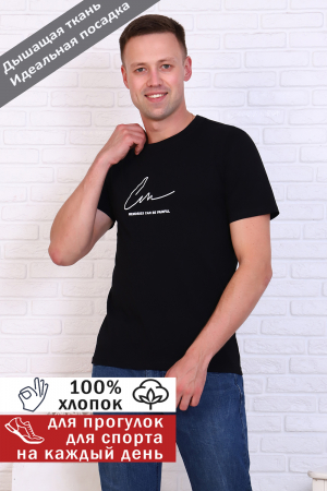 Футболка мужская слегка свободного прямого кроя с коротким рукавом, круглой формы горловиной и принтом на груди. Универсальный вид одежды на любой сезон. Модель выполнена из 100% хлопка. Не просвечивает. Идеальная базовая футболка для мужчин и подростков. Подходит в качестве спортивной одежды, домашней, школьной, для прогулок, путешествий и в подарок.
