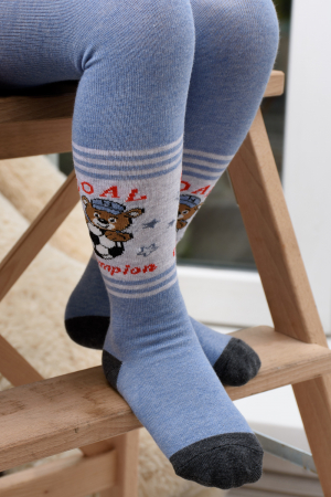 Колготки с вязаным рисунком в виде мяча, медвежонка, надписей и звездочек. Состав ткани: 75% хлопок, 17% п/а, 8% эластан. Размеры: рост 80-86 см (длина стопы 12-13 см, возраст 1-2 года); рост 92-98 см (длина стопы 14-15 см, возраст 1,5-2 года). Четыре расцветки оливковая, серая, светлый джинс и темный джинс. Возможен заказ в розницу. Арт. КД414