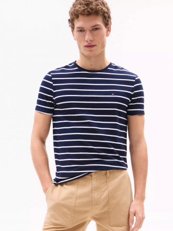 Tommy Hilfiger men's T-shirt. Made from premium stretch cotton for ease of movement, our extra-slim cut tee fits just right. It's the perfect base layer that also works well on its own with jeans or chinos. It might be a wardrobe basic, but it's much more than that.