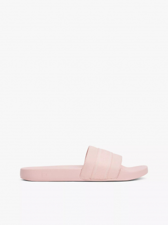 Tommy Hilfiger women's slide. These pool slides combine a sporty aesthetic with luxe design, thanks to the webbed logo trim and contoured footbed.