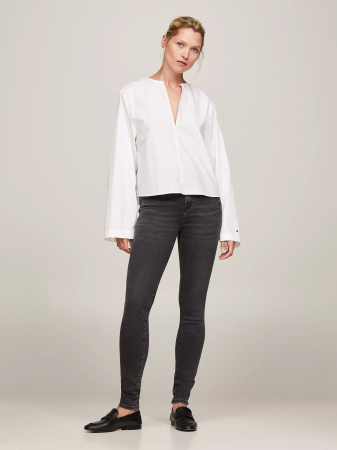 Tommy Hilfiger women's jean. These black wash jeans are an on-trend addition to your casual wardrobe, and thanks to high power THFlex stretch cotton denim, your skinny jeans have never felt (or looked) better.