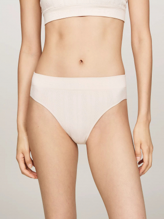 Tommy Hilfiger women's underwear. An intricate knit pattern defines this bikini brief, made from soft, stretch fabric and featuring a logo elastic waistband.