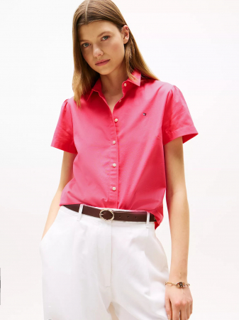 Tommy Hilfiger women's shirt. Understated puff sleeves lend an elevated look to our traditional short-sleeve Oxford shirt. Made from stretch cotton, it's super soft and super comfortable.