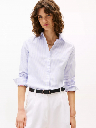 Tommy Hilfiger women's shirt. Shirting made with Oxford cloth is soft, breathable, and durable. Our version is made from organic cotton with a hint of stretch. Comfortable and lightweight, this button-up is the cornerstone of versatile and effortless ensembles.