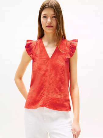 Tommy Hilfiger women's top. Keep cool all season long in our airy cotton muslin top. The V-neck design and breezy flutter sleeves define this effortless silhouette.