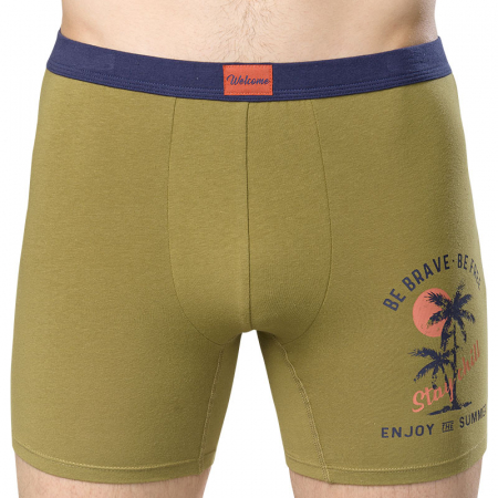 Состав: 93%хлопок 7%эластанОписание: Мужские удлиненные трусы-шорты с высокой посадкой из хлопка. Идеальны для повседневной носки и сна. Качественные трусы продуманного кроя комфортно облегают тело. Широкий притачной пояс делает изделие удобным в носке, не пережимая тело. Однотонные трусы с пляжным принтом и надписью, перевод "Будь смелым, будь свободным, оставайся на чиле, наслаждайся летом". Лаконичный декор в виде лейбла на линии пояса с надписью, перевод "Добро пожаловать".