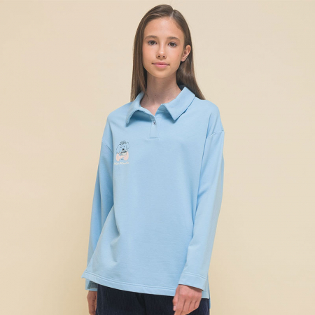 Состав: 95%хлопок 5%эластанОписание: Джемпер детский для девочки. Изделие умеренного объёма со спущенным плечом подарит ребёнку комфорт и свободу движений. Джемпер с воротником отложным в актуальном стиле поло, планка застёгивается на пуговицу. Спинка немного длиннее переда, по бокам разрезы — актуальные, стильные детали. Джемпер неприхотлив в уходе. В составе ткани (футер с начёсом) преобладает высококачественный хлопок — толстовка мягкая и великолепно пропускает воздух — кожа ребёнка дышит. Благодаря эластану изделие сохраняет прекрасную форму в течение длительного времени. Свитшот с принтом по переду и спинке. Милый принт с уютным настроением изображает собачку в бигуди и с чашкой кофе, надписи переводятся: «время для счастья», «пропустить минутку». Принты эластичные и стойкие — легко переносят многочисленные стирки. Джемпер выполнен в нежном голубом цвете, его просто комбинировать с любыми брюками, легинсами, джинсами. Размерная линейка: 2 (92): 3 (98): 4 (104): 5 (110): 6 (116): 7 (122): 8 (128): 9 (134): 10 (140): 11 (146). Свитшот с начёсом подходит девочкам дошкольного возраста, младшим школьницам и девочкам-подросткам. Его можно носить в детский сад, на прогулки, во время отдыха, а также дома. Такие джемперы идеальны для круглогодичного применения: летом, осенью, зимой, весной и демисезон. Это красивый и практичный подарок дочери, внучке или сестре на Новый год и любой другой праздник.