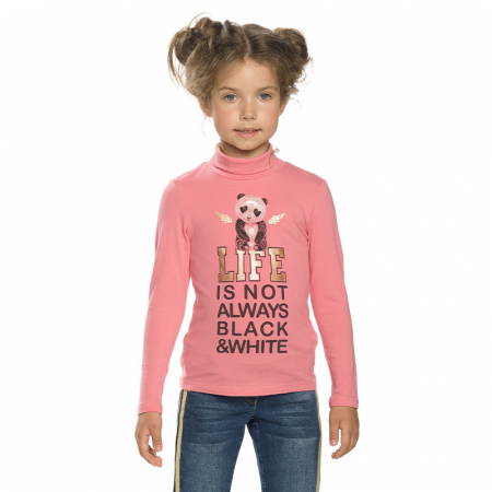 Состав: 95%хлопок 5%эластанОписание: Джемпер для девочек. Классическая водолазка, центральный принт с золотым блеском и надписью "Жизнь не только чёрное и белое".