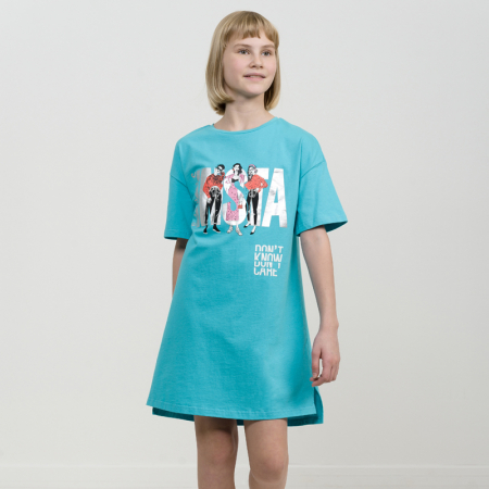 Состав: 100%хлопокОписание: Платье расслабленного силуэта, со спущенным мягким плечом, рукав по типу рубашечного, книзу слегка расширенный. Перепад длины переда и спинки, с разрезами в боковых швах. Принт фэшн стилизация графика шрифты серебряным металликом. Перевод Инста сторис. Надпись белым Не знаю, все равно.