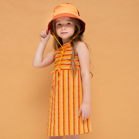 Состав: 100%хлопокОписание: Стильное комфортное платье для девочки - лучшая модель для повседневной носки. Выполнено из натурального хлопка, материал не вызывает аллергии, а тело ребенка всегда дышит. Платье А-образного силуэта, без рукава - в нем не будет жарко. Оригинальное решение - сборка на планке спереди, которая позволяет слегка увеличить размер горловины. Разные направления полосок - модный акцент, который не оставит без внимания и выделит среди сверстников. Идеально, для пляжа, прогулок, детского сада и путешествий.