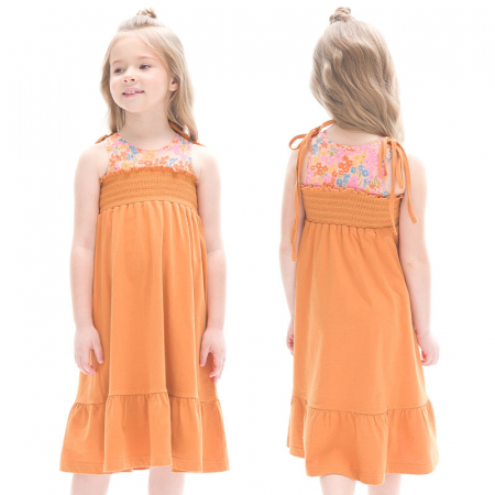 Состав: 100%хлопокОписание: Яркое летнее платье-сарафан длины миди для девочки. Имитация двух изделий, надетых друг на друга. Верхняя часть модели напоминает майку. Нижняя — состоит из лифа с эластичной сборкой и юбки с воланом. Свободный крой и 100% хлопка в составе ткани обеспечивают вашему ребёнку комфорт. Платье не стесняет движений и в нём не жарко. Девочка сможет носить его продолжительное время. Ребёнок растёт —платье словно "растёт" вместе с ним. Декоративная сборка на лифе создаёт актуальную фактуру — один из трендов летнего сезона. Верхняя часть изделия украшена изящным цветочным принтом. На плечах декоративные банты.