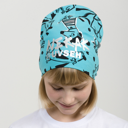 Состав: 95%хлопок 5%эластанОписание: Шапка бини аккуратного объема в all over принт с текстовым принтом из серебристого металлика. Перевод Не как все.