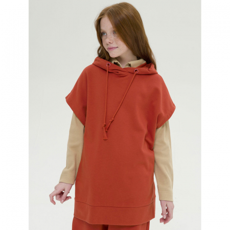 Состав: 60%хлопок 40%полиэстерОписание: Жилет из футера для девочки. Ткань мягкая, дышащая, приятная на ощупь, с большим содержанием хлопка. Свободный крой, спущенное плечо – настоящий трендовый оверсайз. Теплый и удобный капюшон – объем регулируется плетеным шнуром с декоративными кисточками. Большая пройма – комфортно носить на футболку и объемное худи. Боковые разрезы, широкая подгибка проймы и низа основной тканью – изделие не растягивается и не деформируется при активной носке и частых стирках. Идеален для создания многослойных образов. Жилетка комбинируется с джоггерами, слоучами. Подходит для повседневного стиля, учебы и активного отдыха.