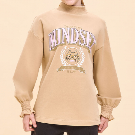 Состав: 95%хлопок 5%эластанОписание: Свитшот с воротником для девочки свободного кроя со спущенным плечом. Объёмный детский свитшот подойдёт девочкам с разными типами фигуры. Оверсайз-свитшот дополнен воротником-стойкой, который обеспечивает дополнительную защиту шеи от холода и ветра. Воротник выполнен из эластичной рибаны (ткань в рубчик) — он прекрасно тянется, ребёнку удобно надевать и снимать свитшот, при этом воротник отлично сохраняет форму. Низ рукавов собран на тонкую резинку в несколько рядов, что придаёт изделию элегантности и женственности. Свитшот детский неприхотлив в уходе. Плотный премиальный трикотаж (футер с начесом): не вытягивается, не закатывается. Благодаря эластану изделие сохраняет первоначальную форму в течение долгого времени. Свитшот с принтом по переду. Милый принт в модном университетском стиле изображает котика в очках, надписи переводятся: «позитивное мышление», «беззаботная жизнь», «будь счастливым». Принты эластичные и прочные — без проблем переносят многочисленные стирки. Джемпер выполнен в универсальном цвете, его просто комбинировать с любыми брюками, легинсами, джинсами и даже юбками — можно создать множество стильных образов. Свитшот с начёсом подходит девочкам дошкольного возраста, младшим школьницам и девочкам-подросткам. Его можно носить в детский сад, на прогулки, во время отдыха, а также дома. Помните о правильном уходе за изделием: рекомендуется стирать при температуре не выше 30 °C, без предварительного замачивания, с изнанки. Это поможет сохранить качество и цвет свитшота на длительное время. Не забывайте о выборе правильного размера. Используйте таблицу размеров на фотографии, чтобы выбрать подходящий вариант для вашей девочки. Обратите внимание, что цвет товара на экране вашего устройства может отличаться от реального.