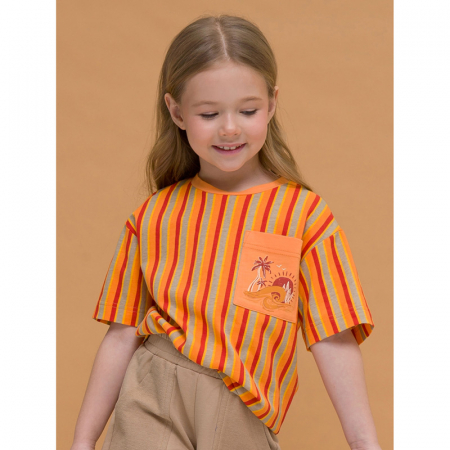 Состав: 100%хлопокОписание: Футболка оверсайз принтованная в полоску для девочки. 100% хлопок в составе – ткань мягкая, дышащая, приятная на ощупь. Накладной карман с принтом – яркий визуальный акцент и изюминка модели. Футболка отлично подходит для создания стильного образа весной и летом в паре со слоучами или шортами. Идеальна для активного детства – на каждый день, для учебы и занятия спортом.