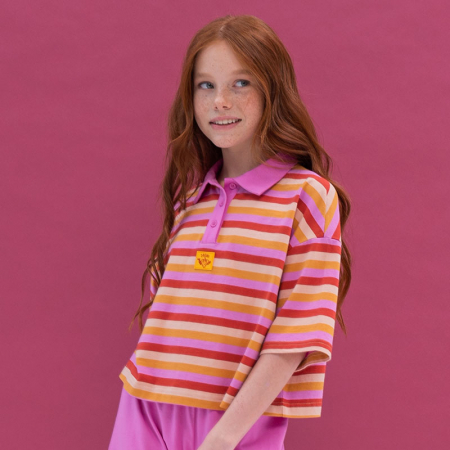 Состав: 100%хлопокОписание: Кроп-топ (поло) оверсайз-силуэта для девочки. Кроп-топ — один из актуальных летних трендов. Модель со спущенным плечом и удлинённым рукавом выполнена из трикотажного полотна в яркую вытканную горизонтальную полоску. Это не принт, полоски не поблёкнут от многочисленных стирок. Состав ткани — хлопок 100%. Благодаря этому поло мягкое, комфортное и приятное на ощупь. Практичный оверсайз-силуэт позволит носить топ продолжительное время. Даже если ребёнок заметно подрастёт, он не станет малым. Модель украшена симпатичной и приятной на ощупь резиновой нашивкой под планкой с пуговицами. Кроп-поло отлично сочетается с шортами и леггинсами.