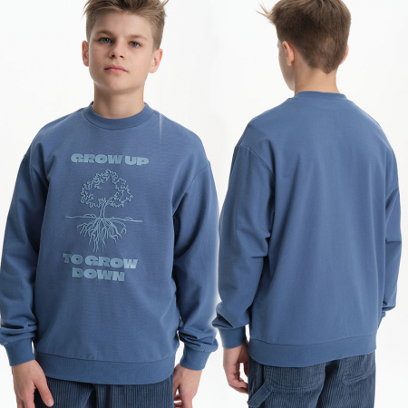 Состав: 100%хлопокОписание: Свитшот без начеса из материала футер-петля. Манжеты и низ изделия из рибаны. Толстовка весенняя украшена выпуклым резиновым принтом, а также надписью. Перевод надписи: "grow down to grow up" - расти вниз (в смысле "пустить корни"), чтобы вырасти вверх. В составе ткани преобладает высококачественый хлопок — спортивная кофта приятна на ощупь и прекрасно пропускает воздух. Тонкую кофту можно носить круглый год. Широкая размерная сетка подойдет как для малыша так и для подростка.