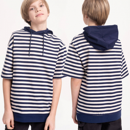 Состав: 100%хлопокОписание: Футболка для мальчика в полоску - это идеальный выбор для активного ребенка. Тельняшка с капюшоном станет стильным дополнением гардероба малыша или подростка. Капюшон одношовный с утяжкой для регулировки объема. Полосатая спортивная футболка подходит для любого времени года, её можно носить как летом, так и в холодное время года в качестве среднего слоя одежды. Помните о правильном уходе за изделием: рекомендуется стирать при температуре не выше 30 °C, без предварительного замачивания, с изнанки. Это поможет сохранить качество и цвет футболки на длительное время.