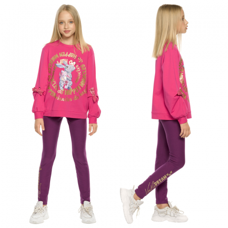 Состав: 95%хлопок 5%эластанОписание: Лосины для девочек из футера с начёсом, локальный rubber принт с золотым металликом. Перевод Мечта. Вуаля.