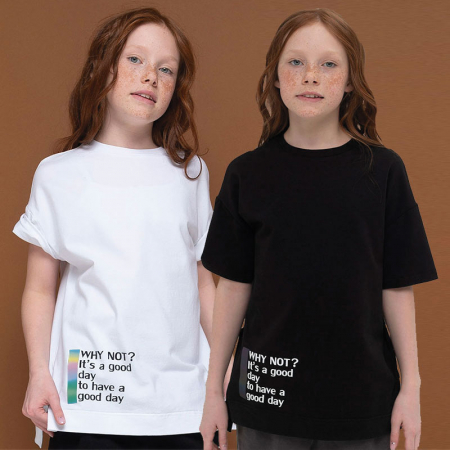 Состав: 93%хлопок 7%эластанОписание: Футболка для девочки. Натуральный хлопок в составе позволяет телу дышать, ткань мягкая, приятная на ощупь, не растягивается и не боится частых стирок. Прямой силуэт, спущенное плечо для комфорта и свободы движений. Внизу перепад длин и боковые разрезы. Широкая обработка основной тканью низа лонгслива – стильно выглядит, комфортно носится. Фишка модели – текстовый принт и серая светоотражающая полоска, которая становится разноцветной при фотовспышке. Отлично подходит для создания стильного школьного образа и на каждый день вне школы.
