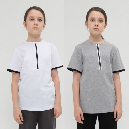 Состав: 93%хлопок 7%эластанОписание: Классическая модель школьной футболки для девочки. Прямой силуэт и свободный рукав делают её удобной для любой фигуры и не ограничивают движения. Практичный и приятный к телу трикотаж не растянется, хорошо впитывает влагу и пропускает воздух. Планка с люрексом под горловиной смотрится минималистично и стильно. А контрастная обтачка по низу рукавов избавит от ежедневных стирок.