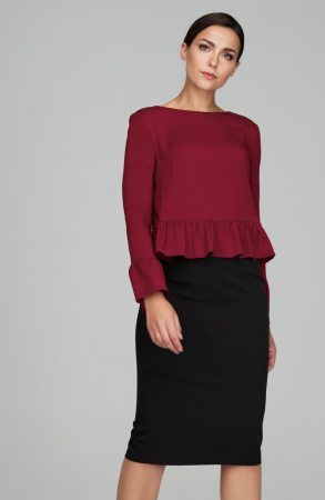 Романтичная блуза из приятной вискозной блузочной ткани. Блузка прямого силуэта. Вырез горловины круглый не глубокий. Рукав втачной длинный. Для отличной посадки введены нагрудные вытачки. В среднем шве спинки застежка на потайную молнию. Низ блузки и рукава обработаны широким воланом на сборке. Силуэт блузки позволяет носить данную модель девушкам разного телосложения.