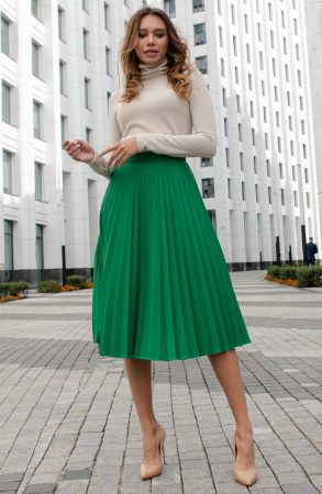 Юбка на поясе со складками "гофре" из трикотажной ткани "джерси". Юбка имеет форму "полусолнце". Застежка на потайную молнию в среднем шве спинке. Длинна юбки "миди".