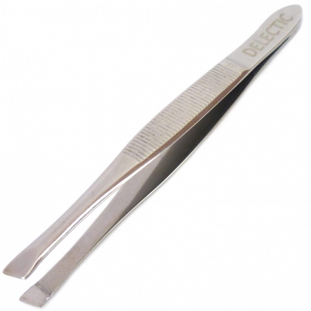Пинцет для бровей DELECTIC - B615 скошенный, серебристый, 90 мм (арт. 01009011539)