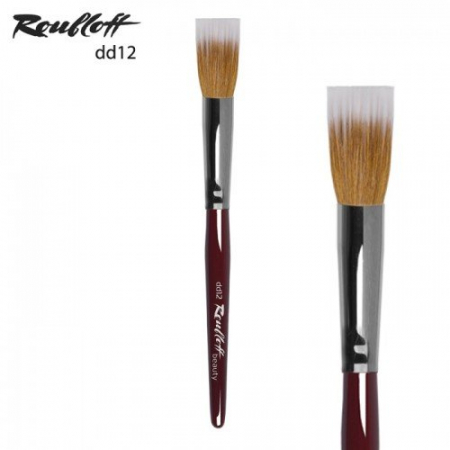 Кисть круглая с двойной выставкой из волоса синтетики и коричневой козы. Подходят для нанесения жидких текстур. Синтетический волос применяется для тонкого нанесения материала, не оставляет полос. Натуральный волос козы используют для удаления излишков материала. Для румян и хайлайтеров.