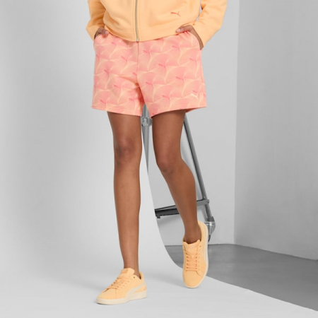Turn up the energy with these high-rise shorts. Featuring an all-over print and a flexible open-bottom design, they're perfect for everything from morning workouts to afternoon hangouts. Move freely and look effortlessly on point. Classic PUMA vibes, built for your everyday hustle.