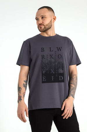 Футболка мужская из гладкокрашеного трикотажного полотна "кулирка" с лайкрой, классическогоь покроя, с коротким втачными рукавами, горловиной овальной формы, обработанной втачной планкой и принтом на полочке, выполненным в технике шелкографии.
