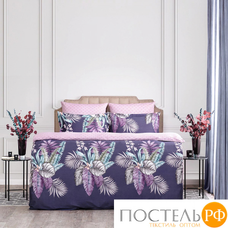 Двусторонний дизайн позволяет легко изменять облик вашей спальни, а застёжка пододеяльника на молнии делает использование комплекта более удобным. Комплект постельного белья привлекает внимание своим ярким и экзотическим дизайном. Глубокий фиолетовый фон создает эффектный контраст для красочных тропических растений, а розовый оттенок ткани-компаньона добавляет мягкости и романтичности. Этот комплект идеально впишется в интерьеры в стиле бохо или тропическом дизайне, привнося в них свежесть и яркость. Он станет отличным выбором для создания уютной и стильной атмосферы в спальне, где каждый сон будет приносить вдохновение и расслабление.