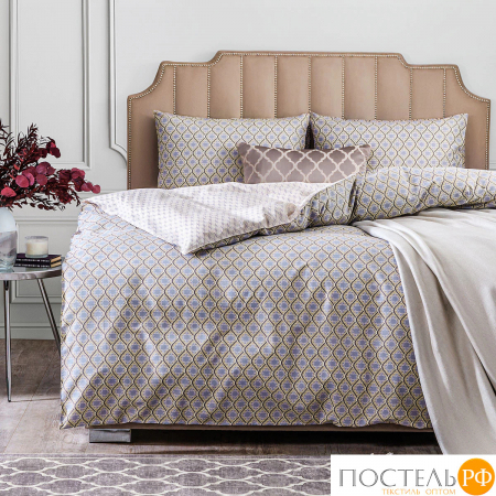 Двусторонний дизайн постельного белья позволяет легко менять облик спальни по вашему желанию. Комплект очаровывает своим изысканным дизайном. Он выполнен в нежных оттенках фиолетового и бежевого с изысканными узорами, которые придают ему элегантность и современность. Основной узор включает насыщенные геометрические элементы, которые добавляют глубину и интерес. Узор на ткани-компаньоне представляет собой тонкие линии в виде сетки, создающие эффект легкости и структуры. Этот набор постельного белья идеально впишется в интерьеры в классическом или современном стиле, подчеркивая вашу индивидуальность и вкус.