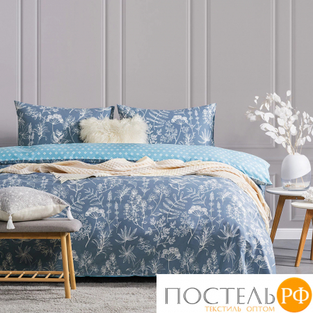 Постельное белье Каталея впечатляет своим изысканным дизайном и гармоничными цветами. Комплект состоит из основной ткани с цветочным принтом на сером фоне, где белые силуэты цветов и растений создают романтичный и естественный образ. Ткань-компаньон в нежном голубом цвете с мелким геометрическим узором добавляет легкости и современности. Это сочетание цветов и узоров создает уютную и свежую атмосферу в спальне, делая комплект идеальным выбором для интерьеров в скандинавском стиле или стиле прованс. Данный дизайн прекрасно подходит для создания расслабляющей обстановки, способствующей комфортному сну и отдыху.