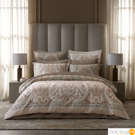 «Алькан» оформлен витиеватым восточным орнаментом со сложными переплетениями линий и множеством тонко выписанных деталей. Этот богатый узор привлекает приятным сочетанием кофейных оттенков, цвета какао с молоком и теплого терракотового. Такая комфортная палитра создает уютную, располагающую к отдыху атмосферу в спальне. Постельное белье двустороннее: с обратной стороны наволочек и пододеяльника цвета узора меняются на противоположные.